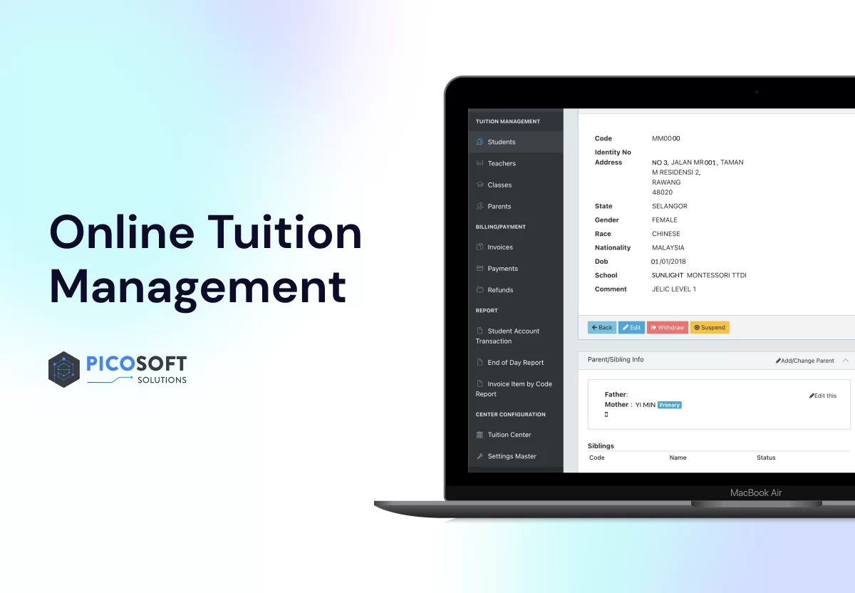 A comprehensive platform designed to streamline educational administration for tuition centres and online educators. The system enables institutions to manage the complete student lifecycle, from enrollment through graduation, while handling teaching staff coordination and financial transactions. It solves the administrative complexity of online education through an integrated suite spanning student records, instructor management, course organisation, and financial processing.